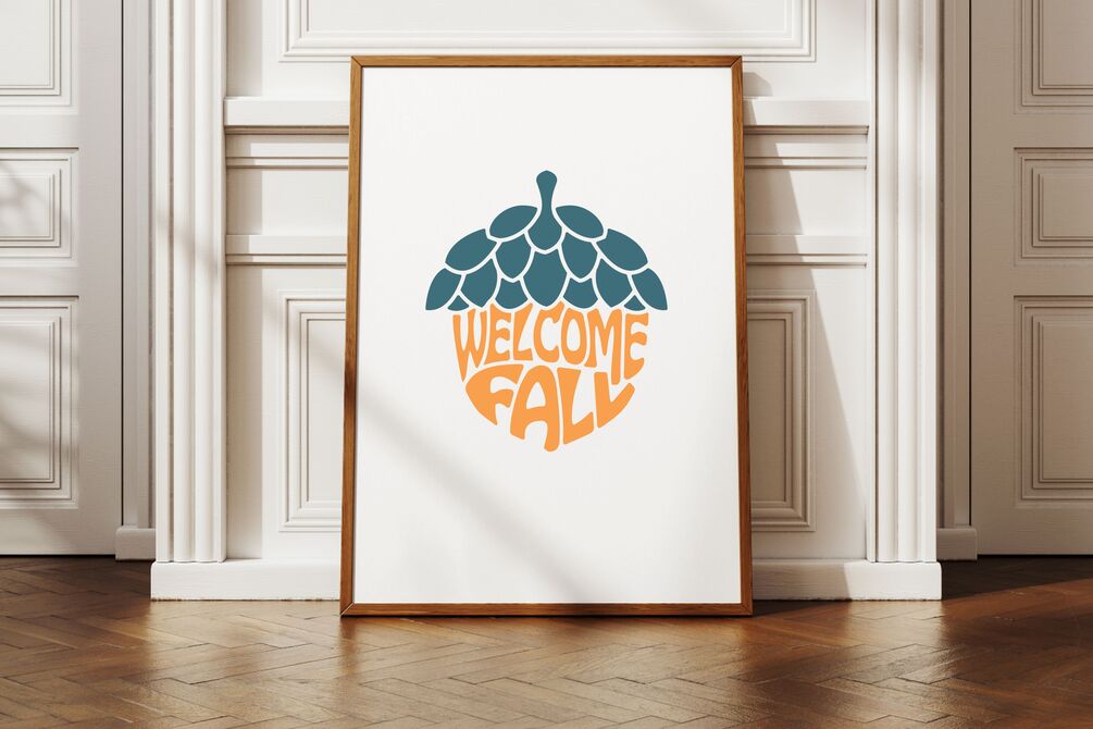 This design features the words Welcome Fall creatively made into an Acorn shape.